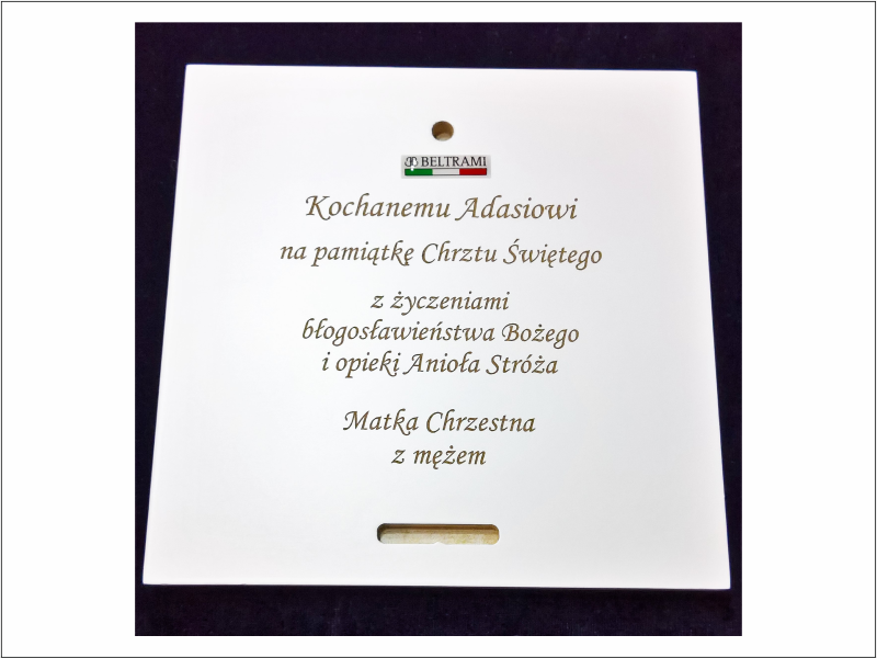 Na srebrnym obrazku możemy wykonać indywidualny grawer dedykacji.