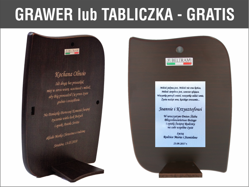 - z możliwością indywidualnego graweru lub tabliczki z grawerem GRATIS