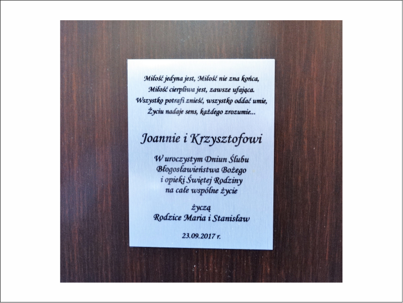 Na srebrnym obrazku możemy wykonać indywidualny grawer dedykacji.