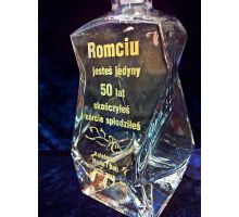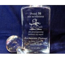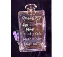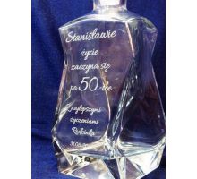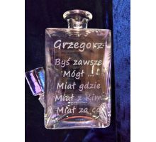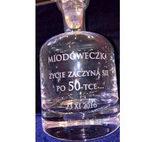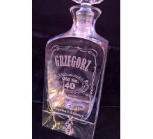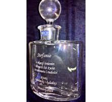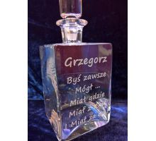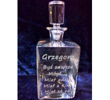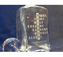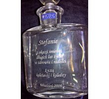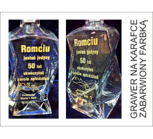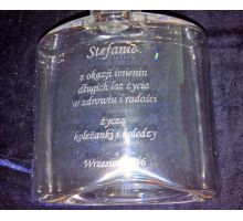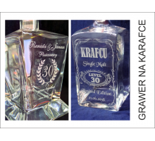Na powierzchni karafki wykonujemy grawer dowolnej dedykacji, ozdobników, loga czy zdjęcia.