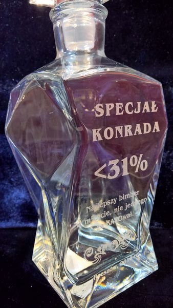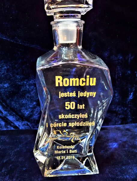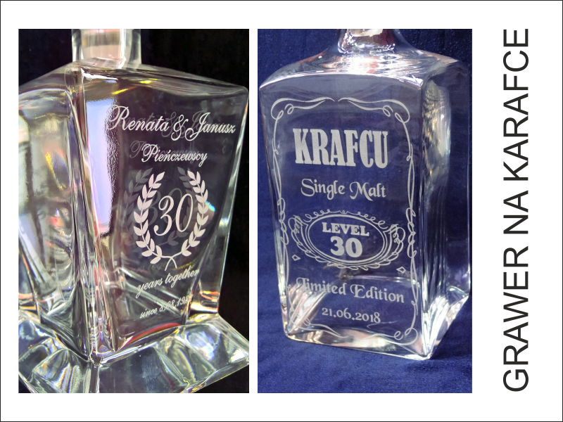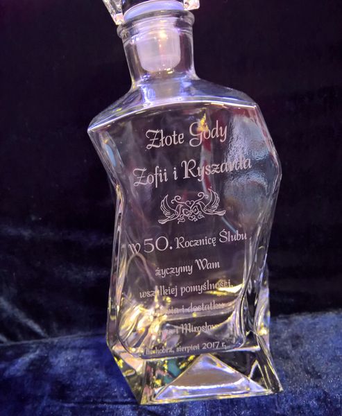 Na powierzchni karafki wykonujemy grawer według uzgodnionego wcześniej projektu:
