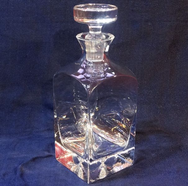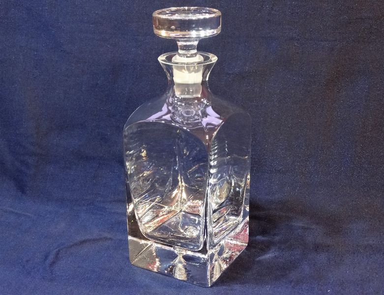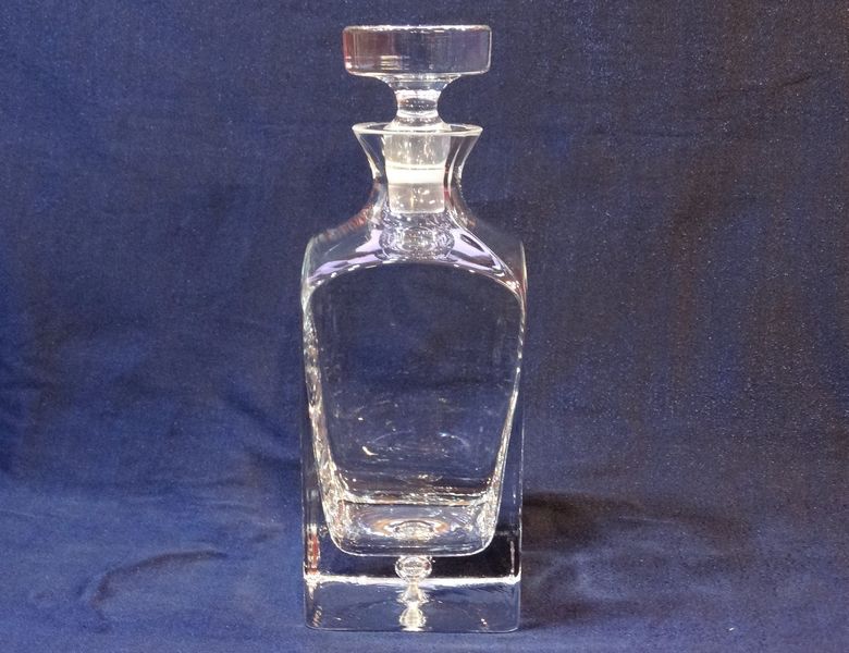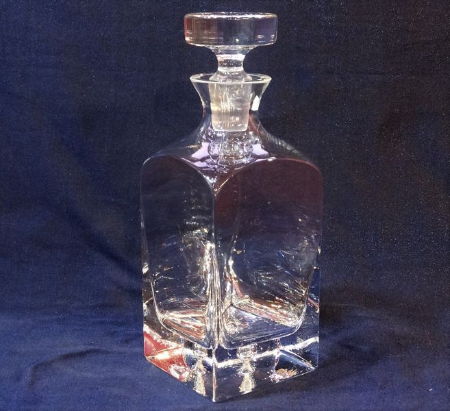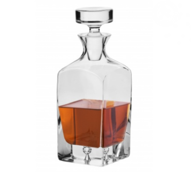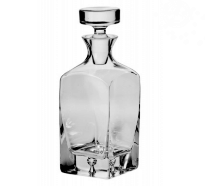 Prezentowana karafka ma prosty kształt prostopadłościanu o kwadratowej podstawie. Wykończenie stanowi korek w kształcie krążka.