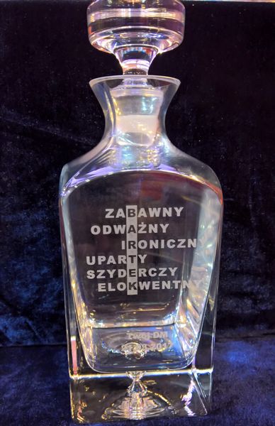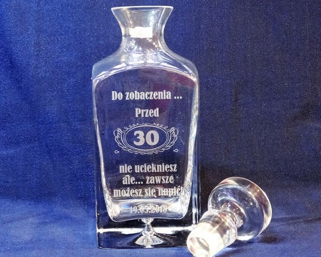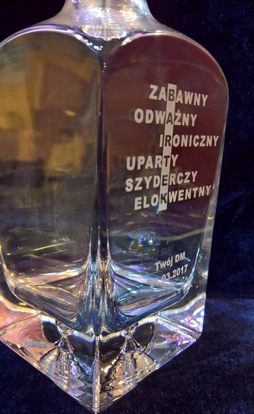 Na powierzchni karafki wykonujemy grawer według uzgodnionego wcześniej projektu: