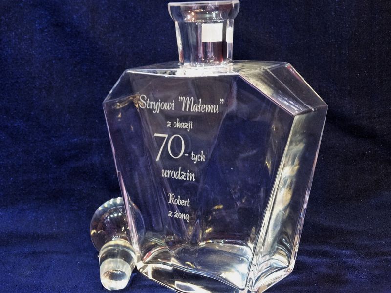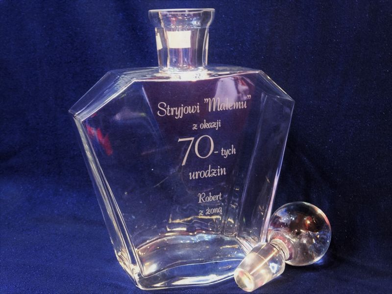Na powierzchni karafki wykonujemy grawer według uzgodnionego wcześniej projektu:
