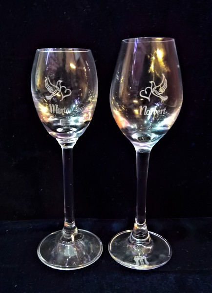 Na powierzchni kieliszka wykonujemy grawer według uzgodnionego wcześniej projektu: