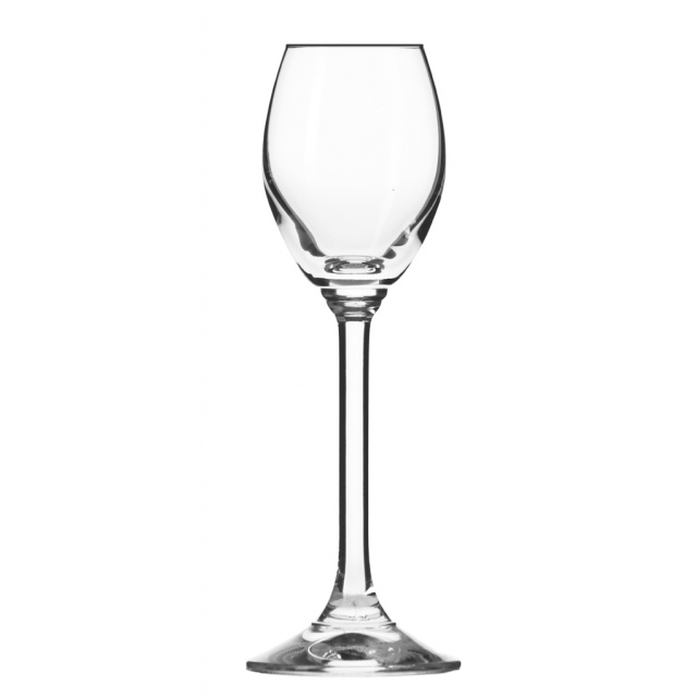 Smukły kształt – klasyczna czarka o pojemności 50 ml z gładkim rantem, finezyjnie połączona z prostą nóżką i stopką.