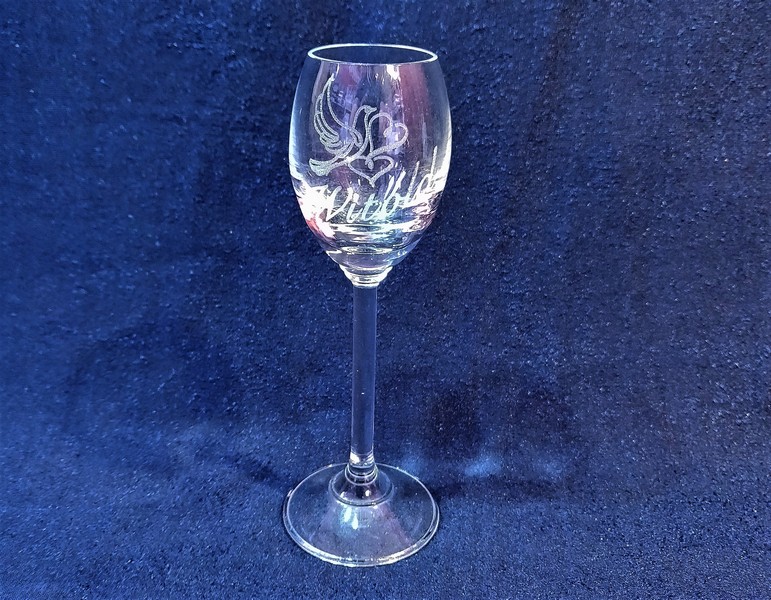 Na powierzchni kieliszka wykonujemy grawer według uzgodnionego wcześniej projektu: