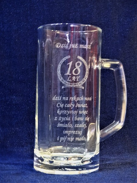 Bardzo dobrej jakości kufel do piwa o pojemności użytkowej 500 ml.