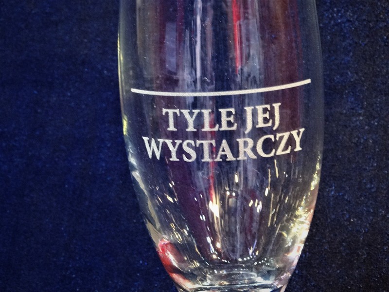 Na powierzchni szkła wykonujemy grawer według uzgodnionego wcześniej projektu: