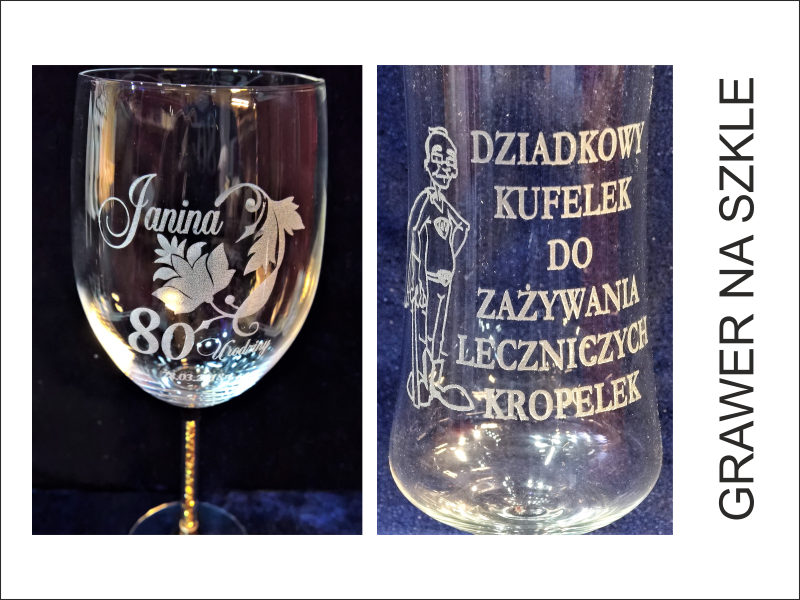 Na powierzchni szkła wykonujemy grawer według uzgodnionego wcześniej projektu: