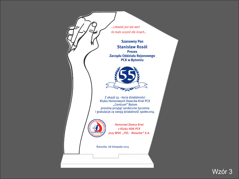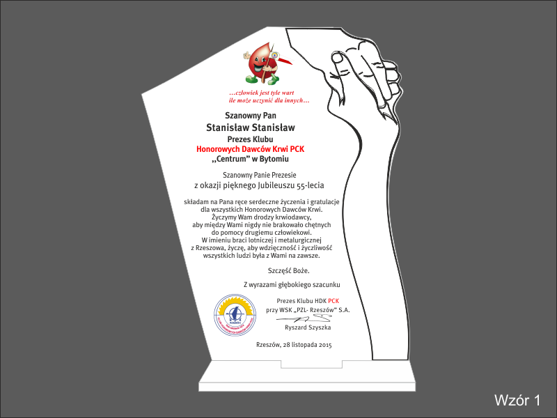 Istnieje możliwość wykonania dedykacji wg indywidualnych ustaleń i projektu.