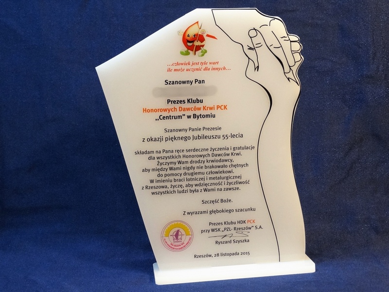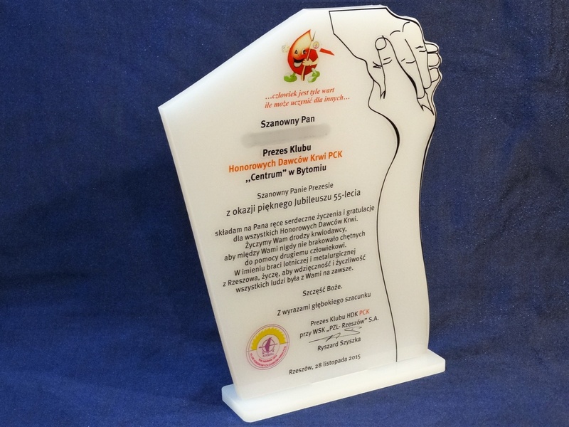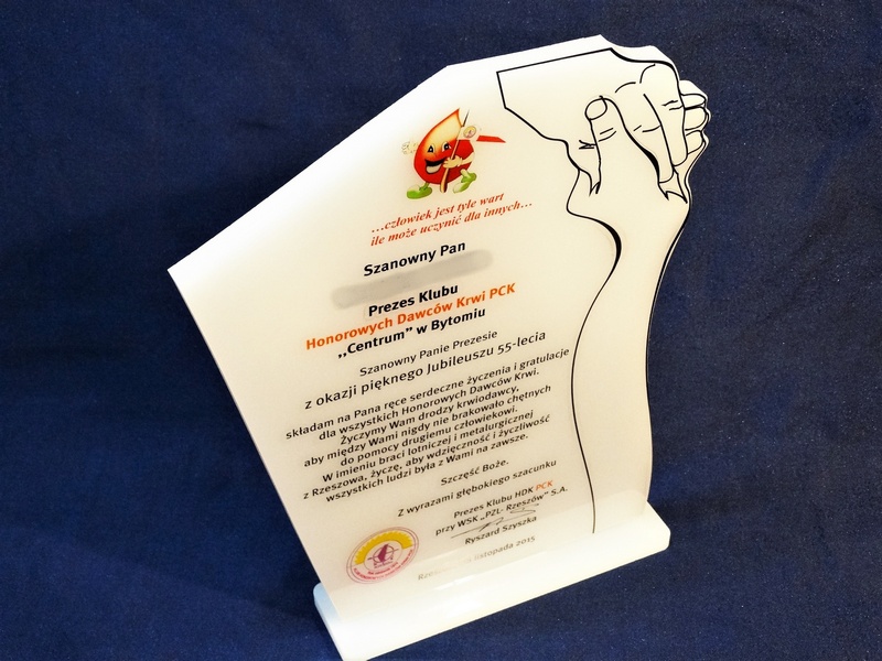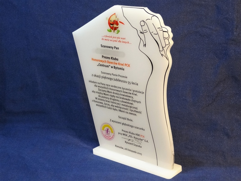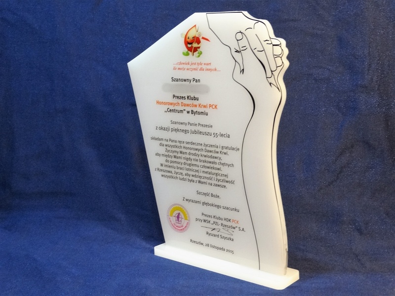 Zaprezentowana statuetka dostępna jest w dowolnym rozmiarze, a jej grubość to 8 mm.