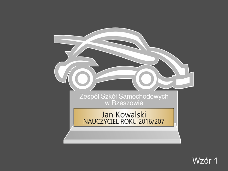 W projekcie statuetki wykorzystano motyw samochodu.