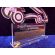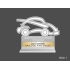 Statuetka Samochód wykonana z bezbarwnej pleksi i złotego laminatu, z grawerem dedykacji i ozdobnych grafik.