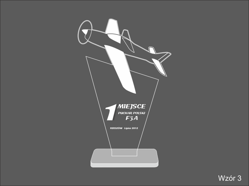 Można wykonać statuetkę w przykładowej wielkości: 16 x 25 cm (3 miejsce), 18 x 29 cm (2 miejsce), 20 x 32 cm (1 miejsce).
