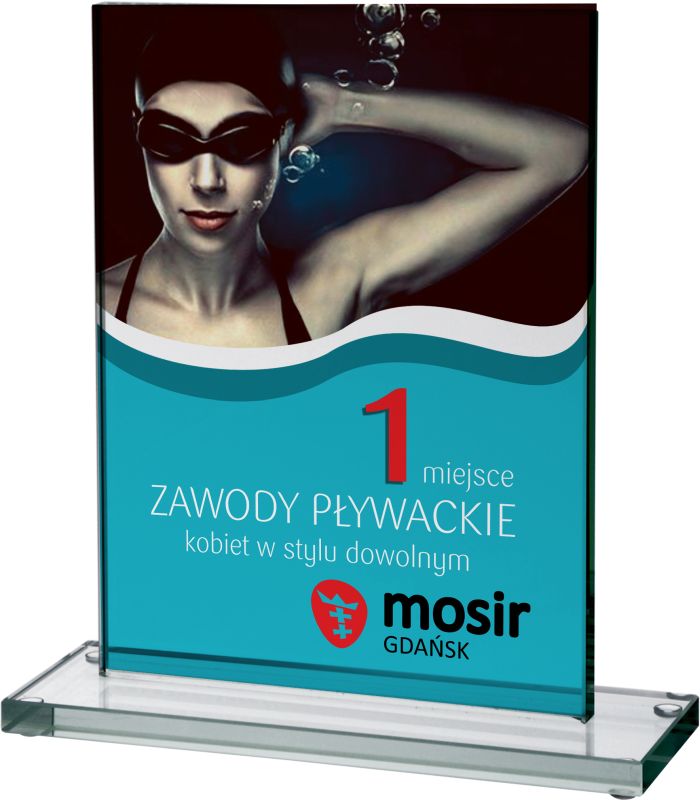 Statuetka szklana 80033 (80032, 80031) z grawerem lub nadrukiem dostępna w 3 rozmiarach.