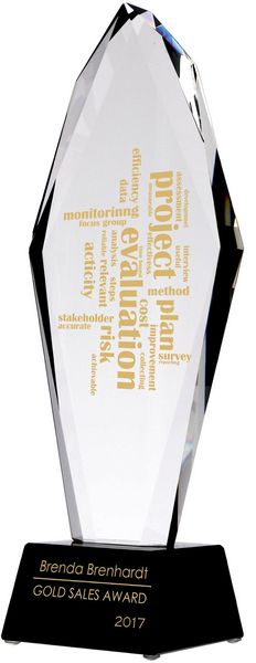 Trofeum, statuetka szklana C043 z grubego szkła z grawerem.