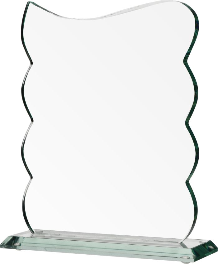 Tafla szklana statuetki ma szlifowane i pofalowane krawędzie.
