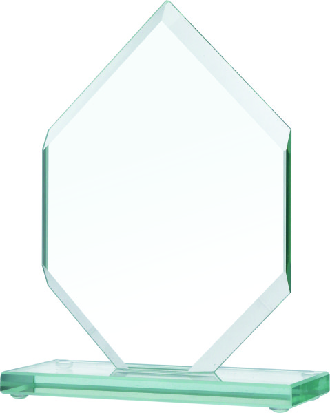 Statuetka szklana ma kształt szlifowanego symetrycznego siedmiokąta zbliżonego wyglądem do latawca.