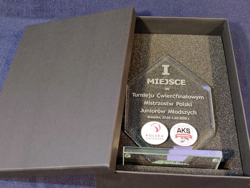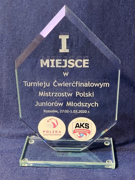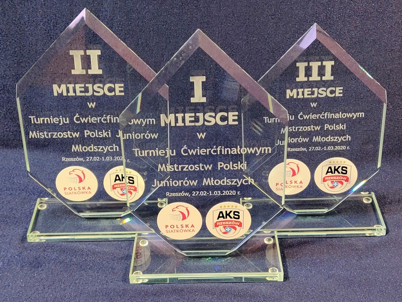 Tafla szklana statuetki ma na krawędziach wykonany szlif.