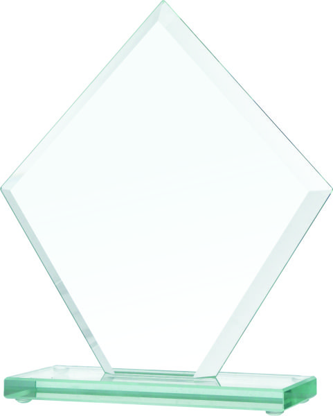 Statuetka szklana ma kształt szlifowanego symetrycznego pięciokąta zbliżonego wyglądem do latawca.
