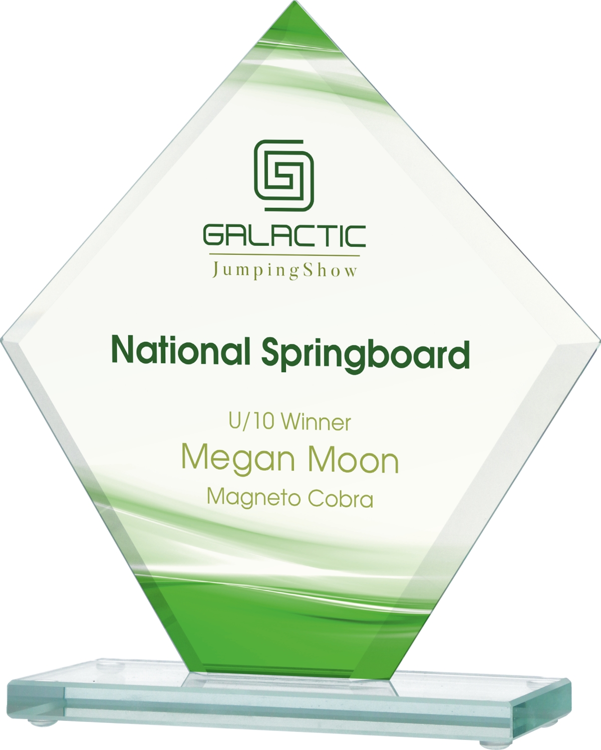 Statuetka szklana GS109 z grawerem lub nadrukiem dedykacji dostępna w 3 rozmiarach.