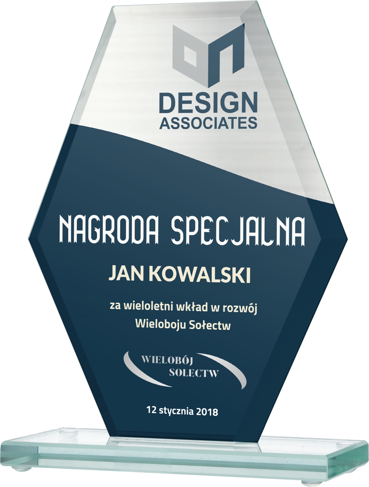 Tafla szklana statuetki ma na krawędziach wykonany szlif.