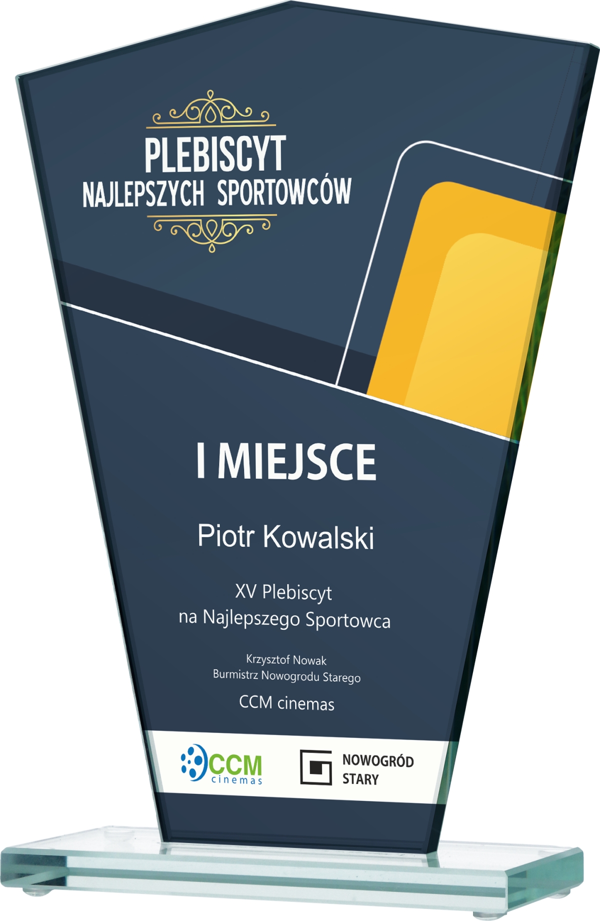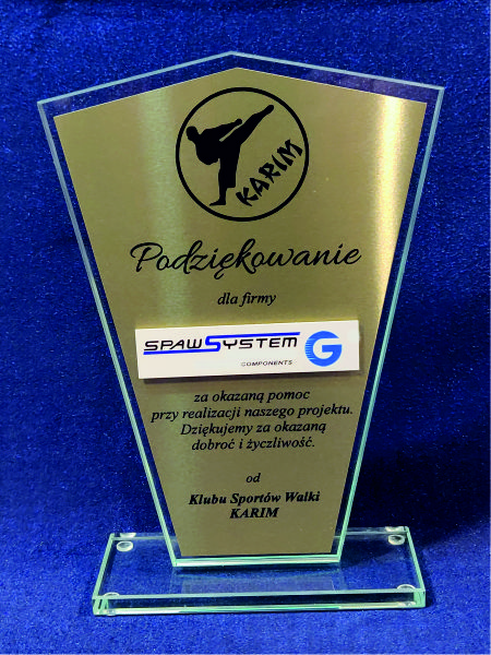 Tafla szklana statuetki ma na krawędziach wykonany szlif.