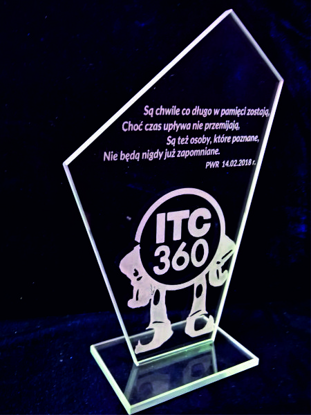 Tafla szklana statuetki ma na krawędziach wykonany szlif.