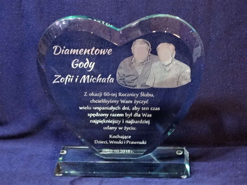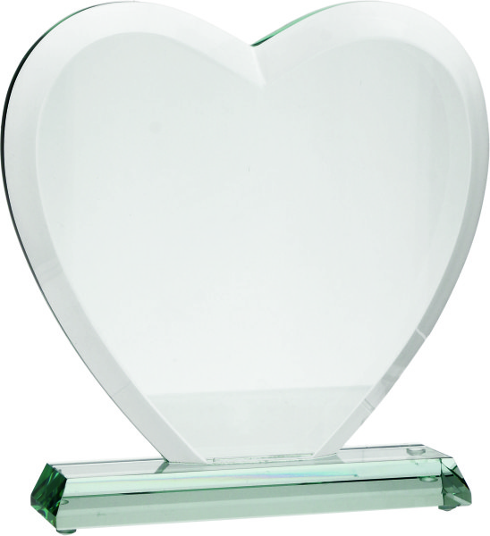 Statuetka szklana G031 w kształcie serca z grubego szkła z grawerem lub nadrukiem w etui.