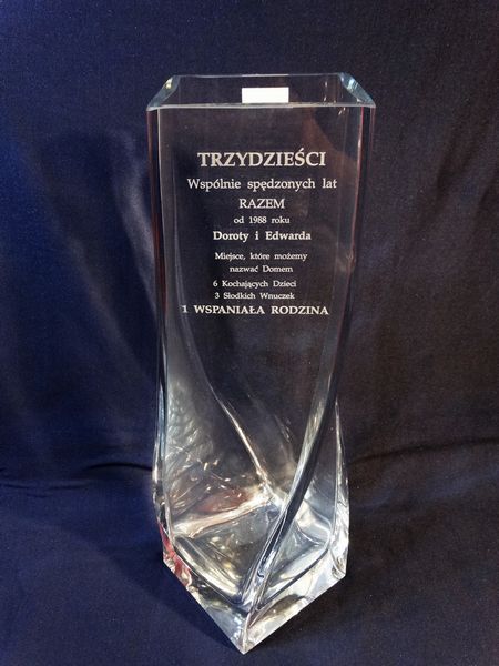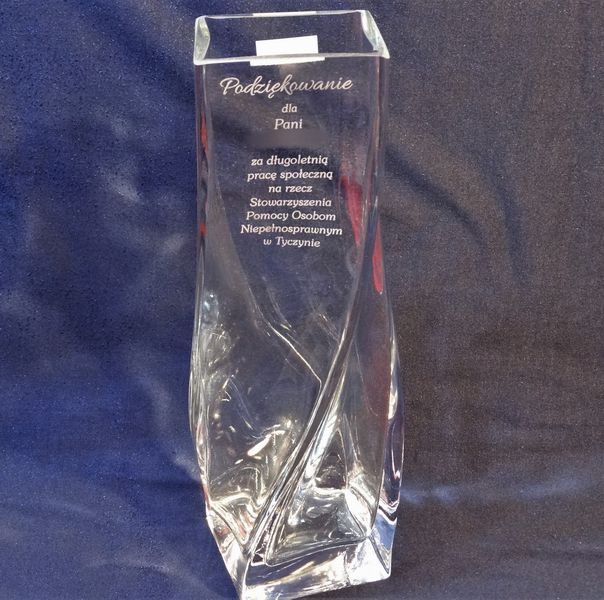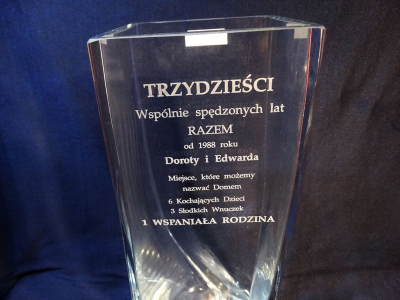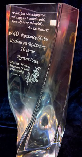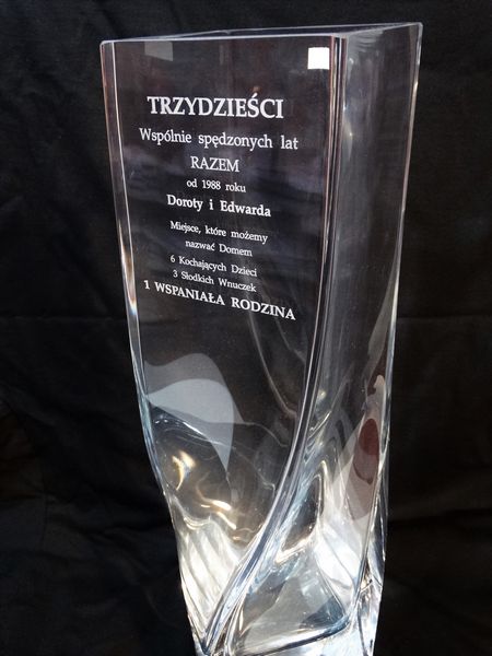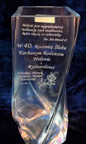 Na powierzchni wazonu wykonujemy grawer według uzgodnionego wcześniej projektu: