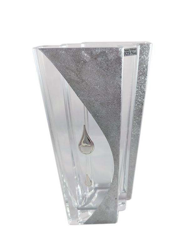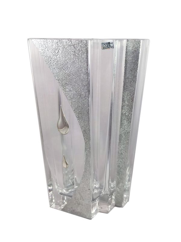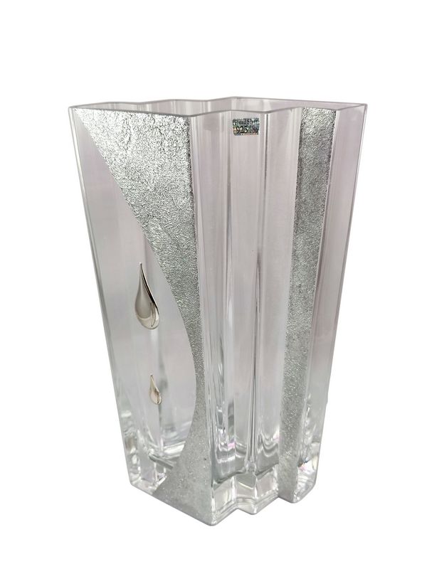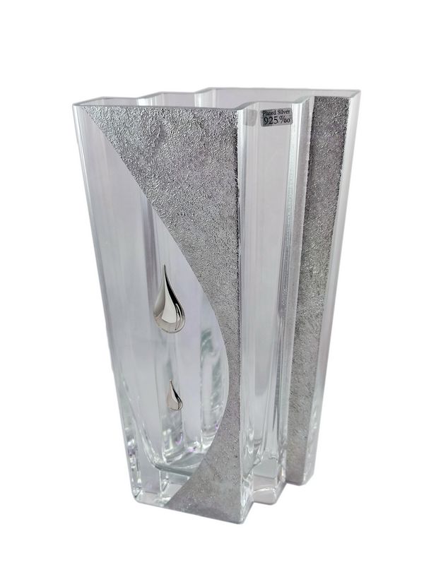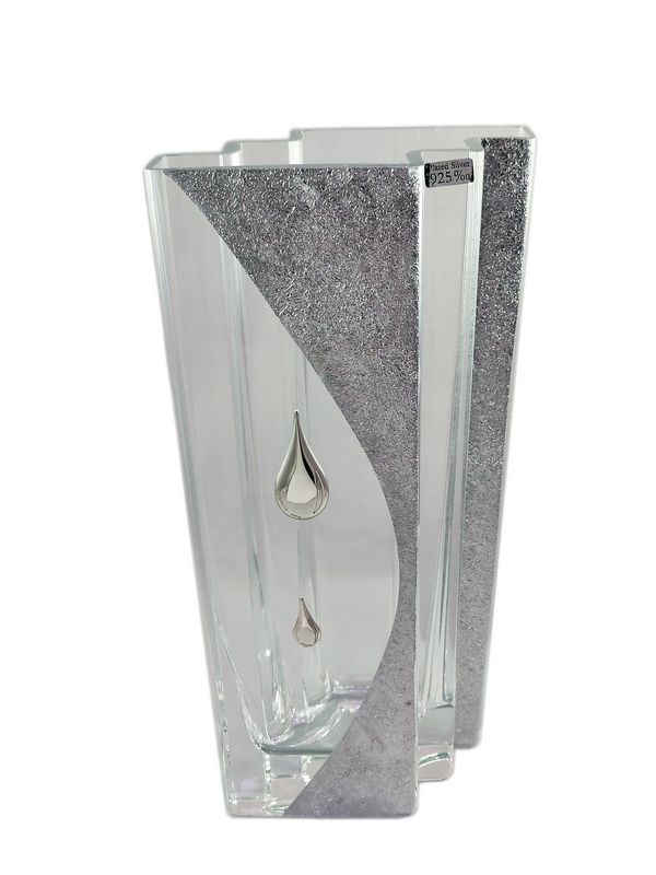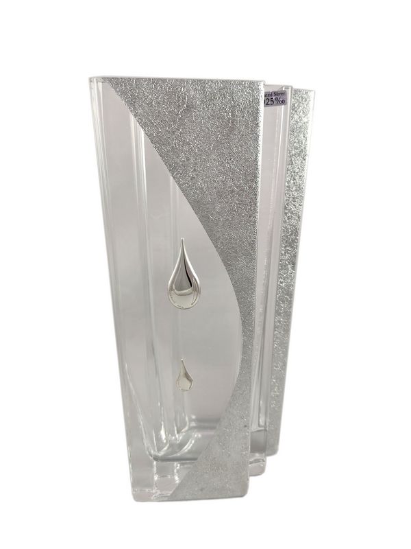 Wazon szklany ozdobiony srebrnymi kroplami Emanuel 125/300 z grawerem.
