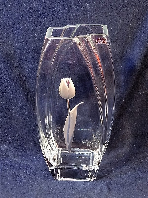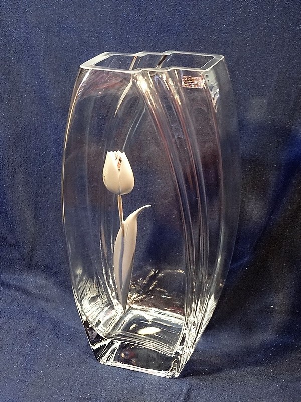 Wazon Ox-Art Decorator 412/320 z ozdobnym dużym tulipanem, wysokości 32 cm, z grawerem.