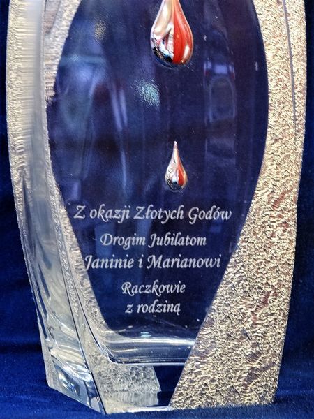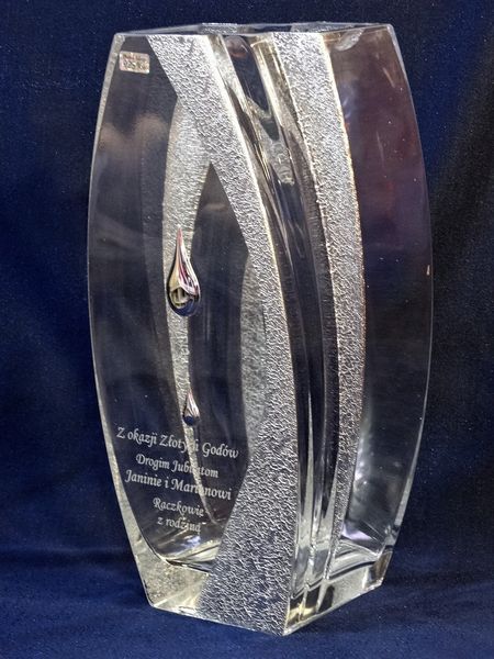 Intrygująca forma i zdobienie wazonu w połączeniu z dedykowanym pamiątkowym grawerem wzbudzi zachwyt i niepowtarzalne emocje obdarowanych.