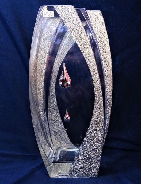 Dodatkowo w centralnej części wazonu umieszczone są srebrne błyszczące krople.