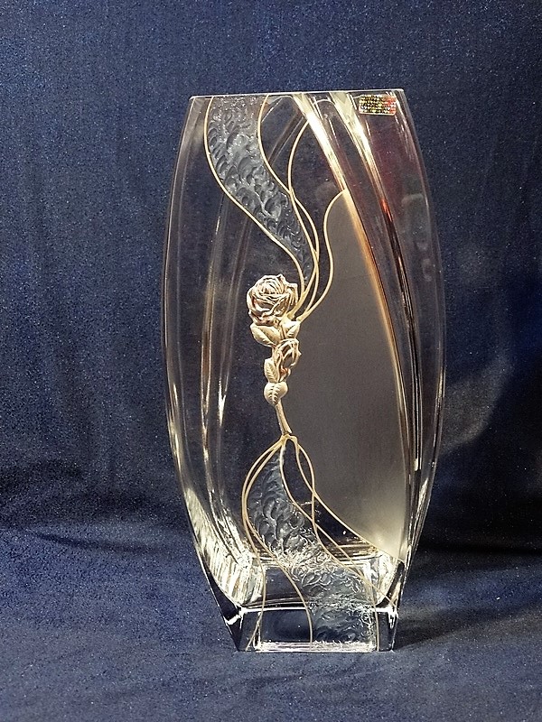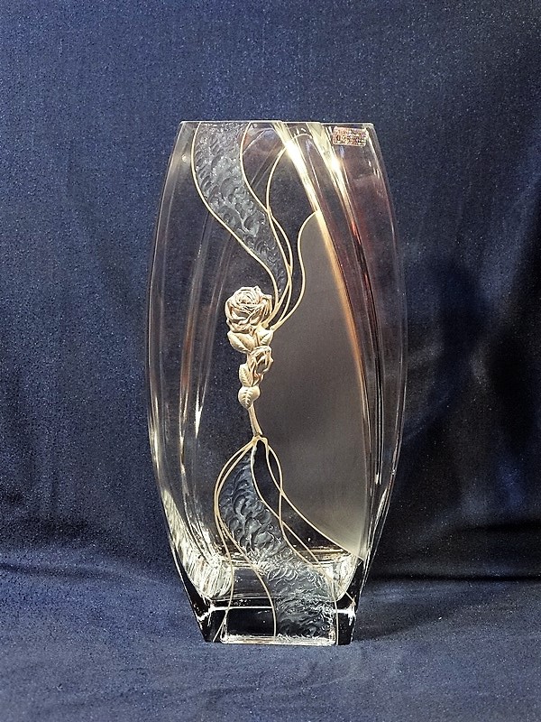 Wazon Ox-Art Decorator 412/320 z ozdobną różą, wysokości 32 cm, z grawerem.