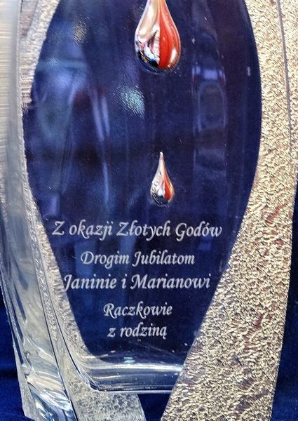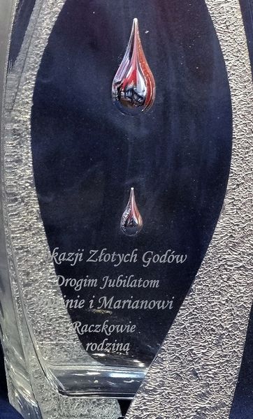 Intrygująca forma i zdobienie wazonu w połączeniu z dedykowanym pamiątkowym grawerem wzbudzi zachwyt i niepowtarzalne emocje obdarowanych.