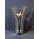 Elegancki wazon ozdobiony srebrem. Zdobienie jest z boku wazonu i przypomina pognieciony srebrny papier naklejony na szkle.