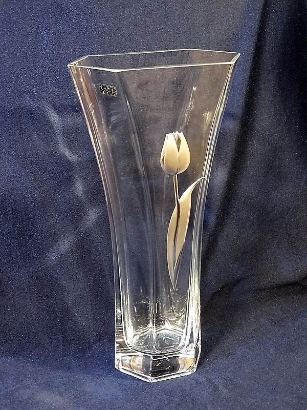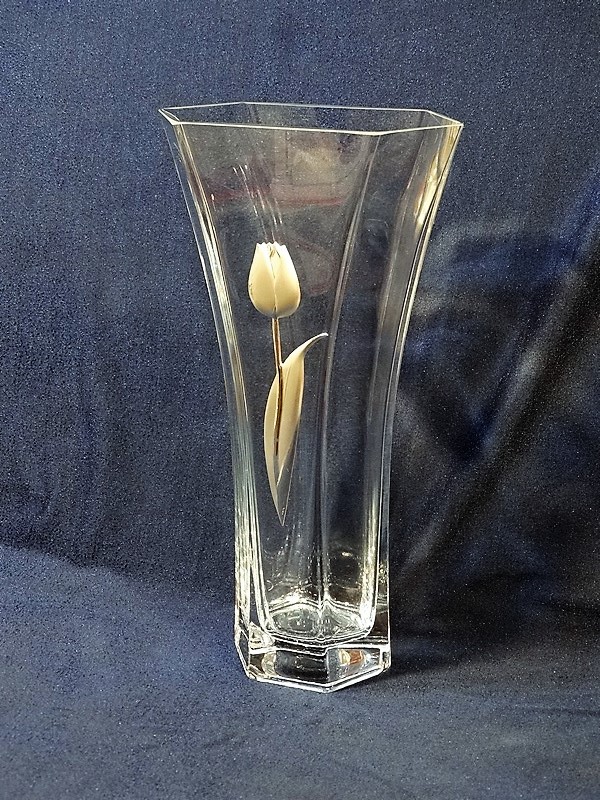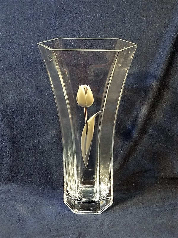 Wazon Ox-Art Decorator 6768/350 z ozdobnym tulipanem, wysokości 30 cm, z grawerem.