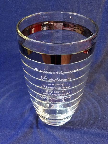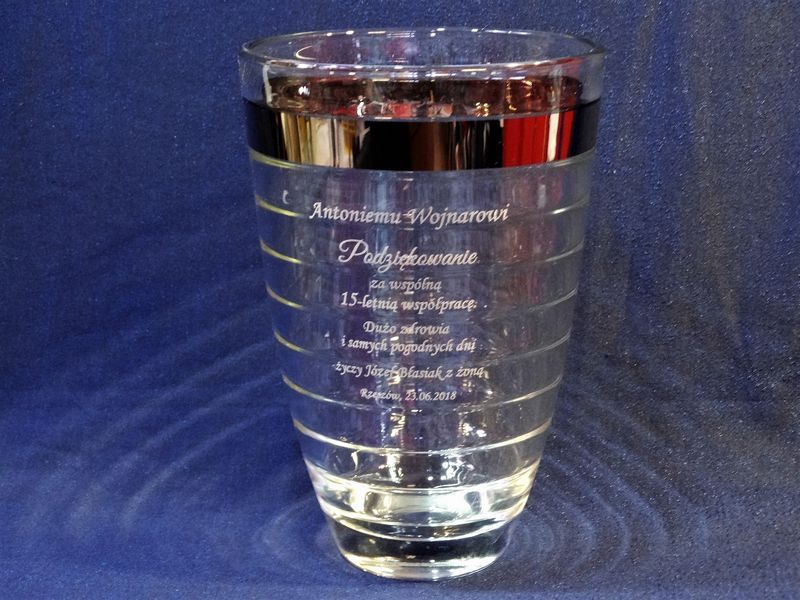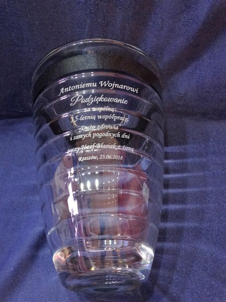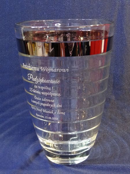Na powierzchni wazonu wykonujemy grawer według uzgodnionego wcześniej projektu: