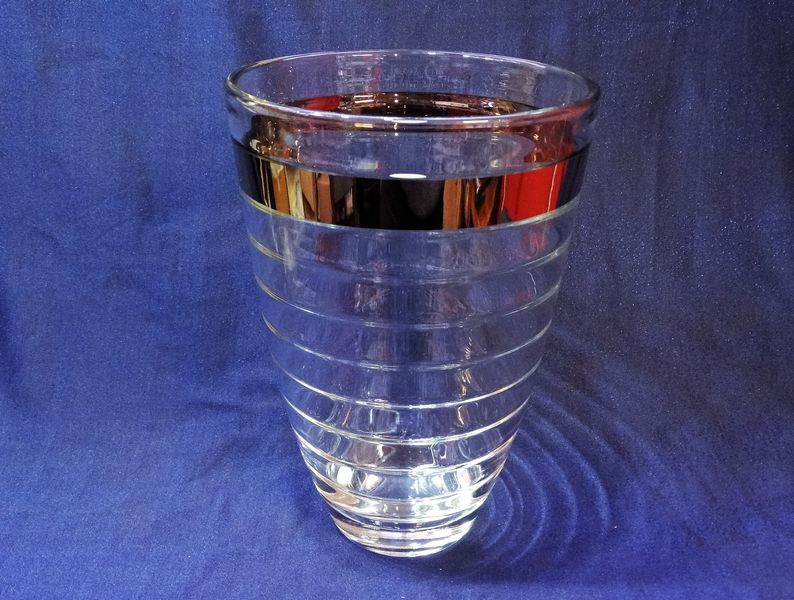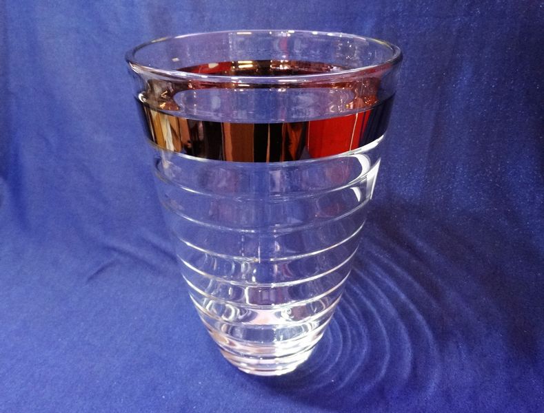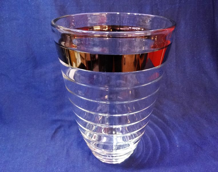 Wazon szklany z kolekcji Baguette z platynowym ozdobnym otokiem o interesującym, niepowtarzalnym wyglądzie.
