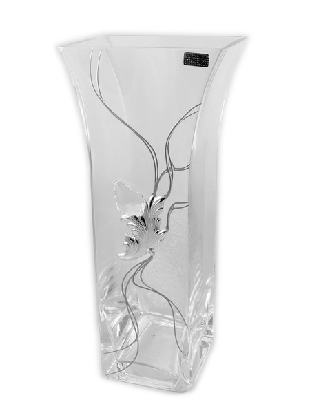 Wazon szklany Alicja 418/320 ozdobiony kryształem i srebrnym liściem z grawerem dedykacji.
