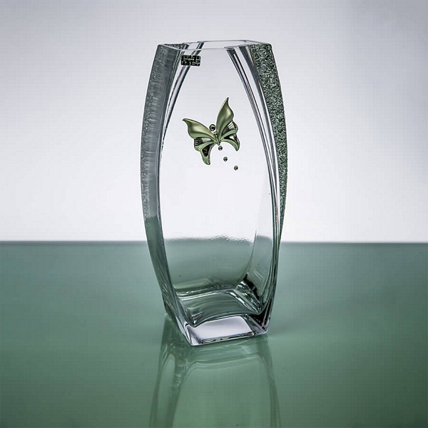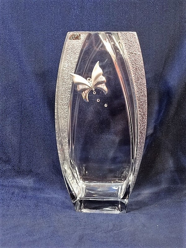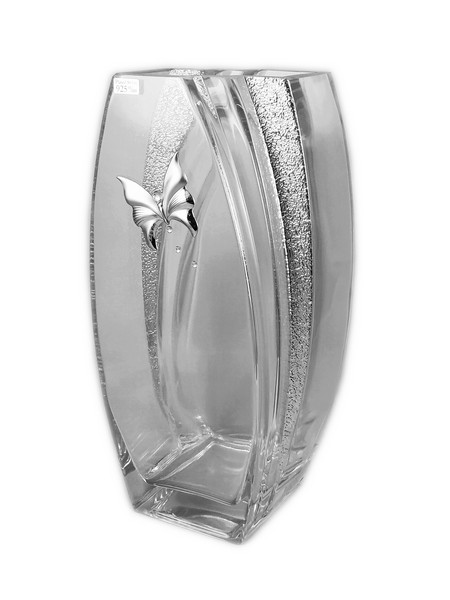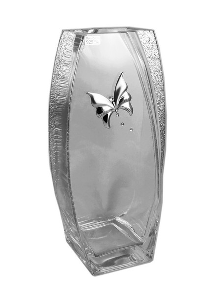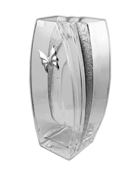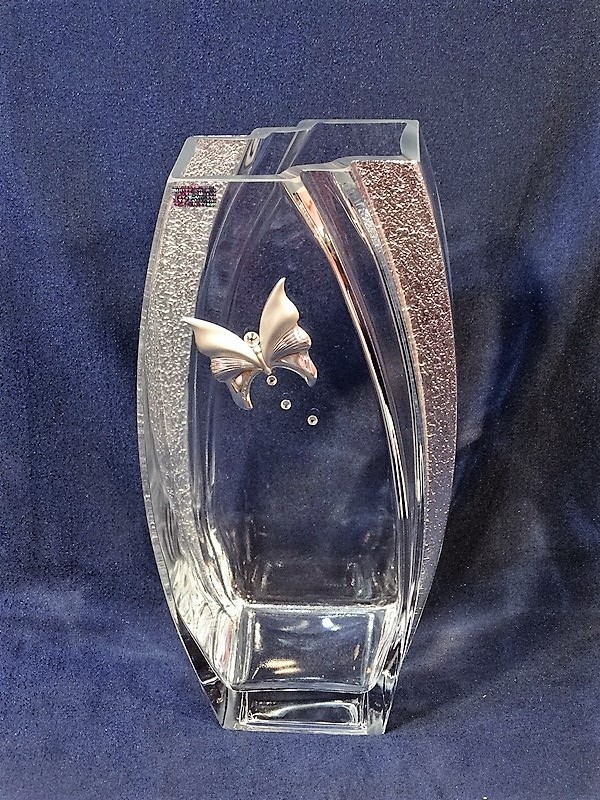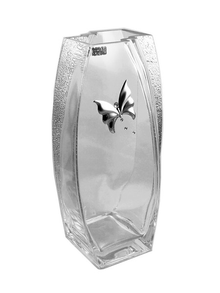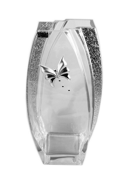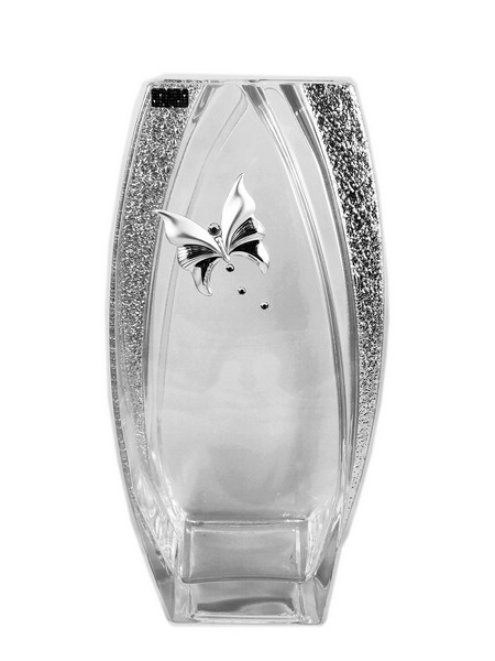 Wazon ozdobiony jest umieszczonym centralnie efektownym srebrnym motylem i kryształkami.