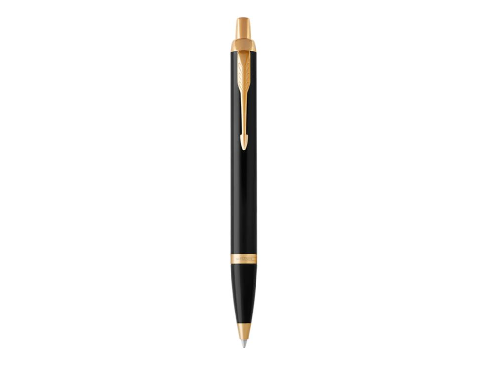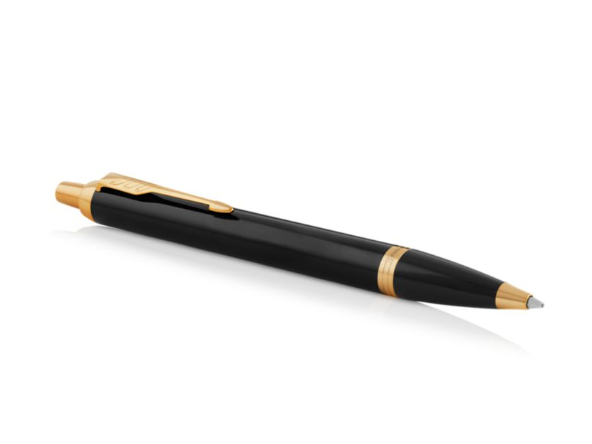 Korpus długopisu Parker IM Core Black GT wykonano z mosiądzu pokrytego błyszczącym, czarnym lakierem.