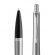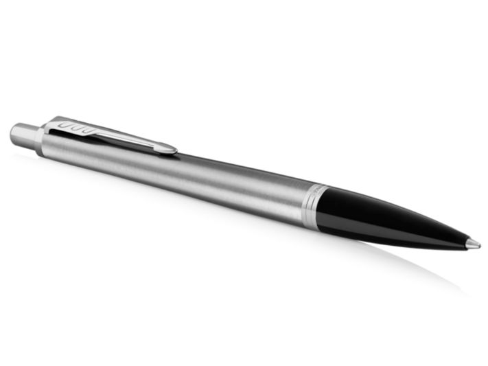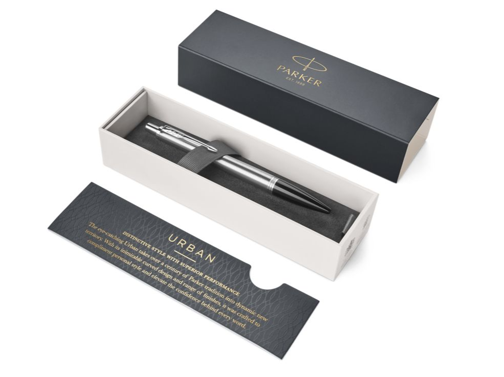 Korpus długopisu Parker Urban Core Metro Metallic CT wykonano ze stali o charakterystycznej, szczotkowanej fakturze. Sekcja przednia wykonana z połyskującego, czarnego materiału polimerowego. Całość wieńczą pierścienie ze stali nierdzewnej z wykończeniami platerowanymi chromem.