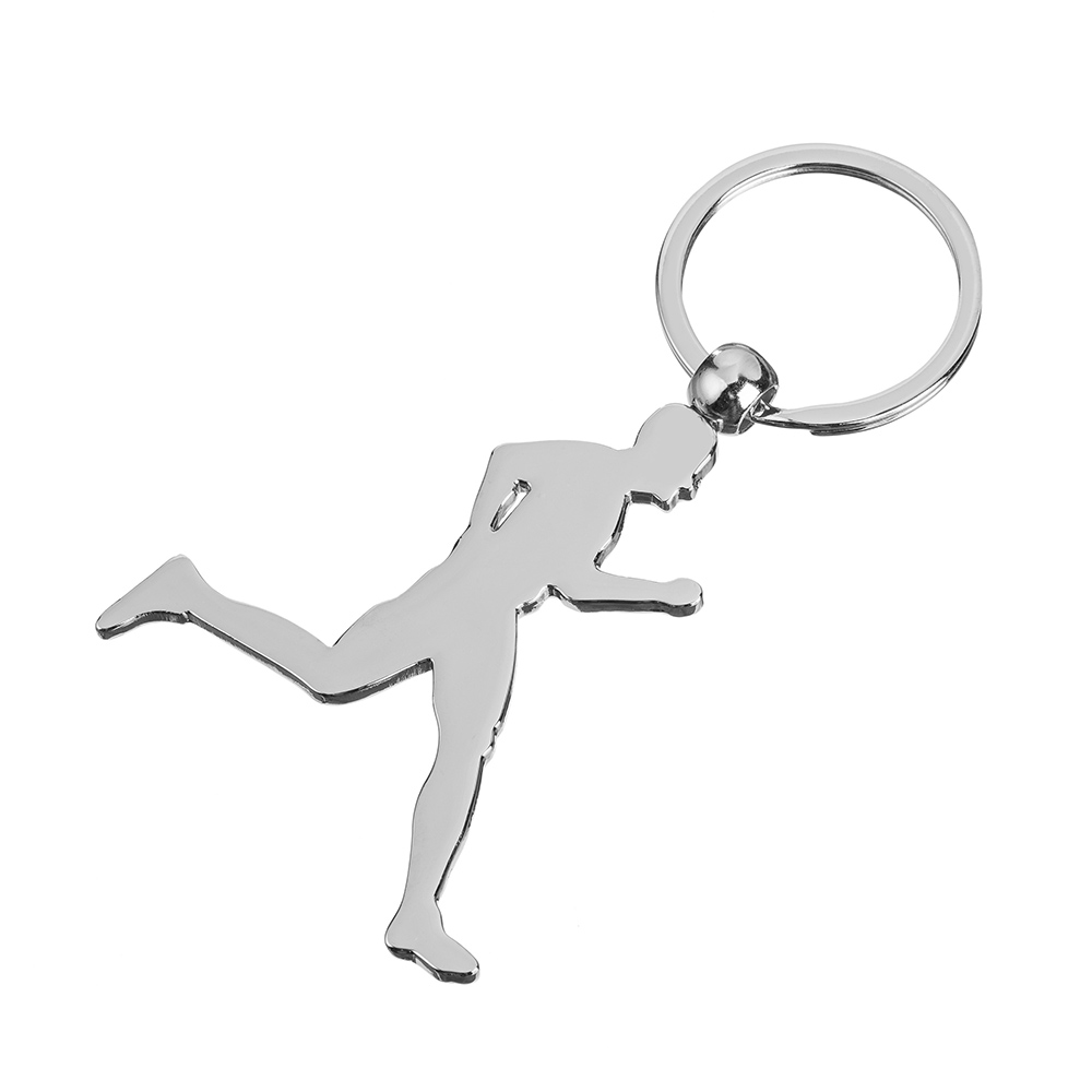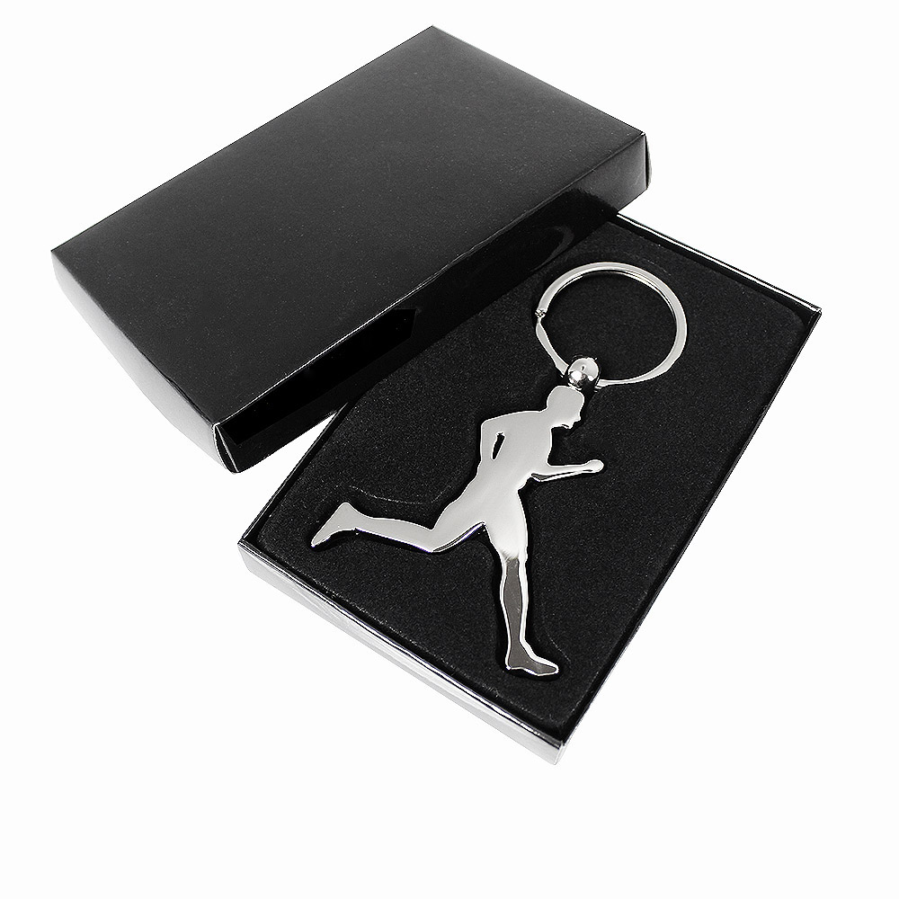 Brelok metalowy w kształcie biegacza z możliwością graweru z obu stron.