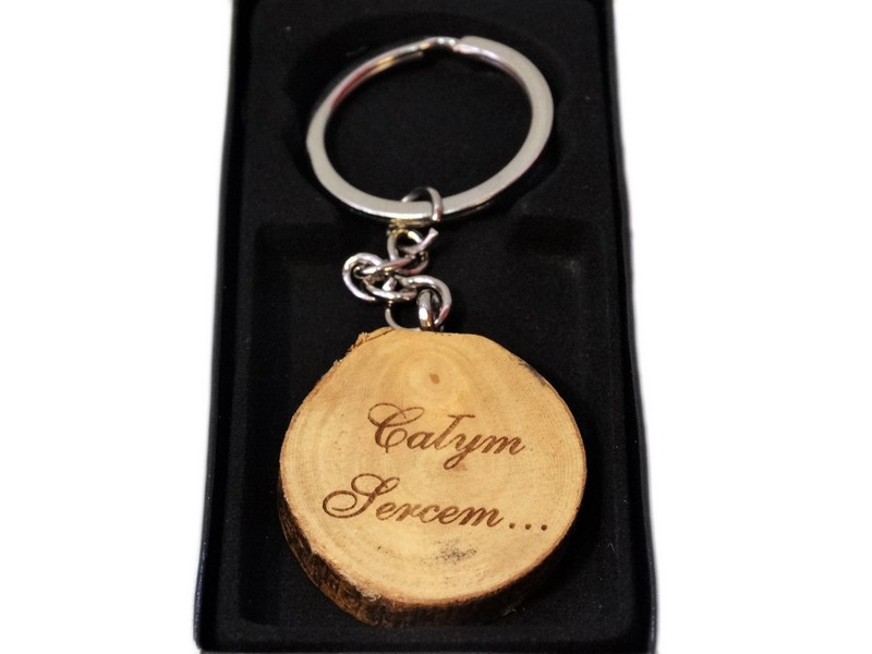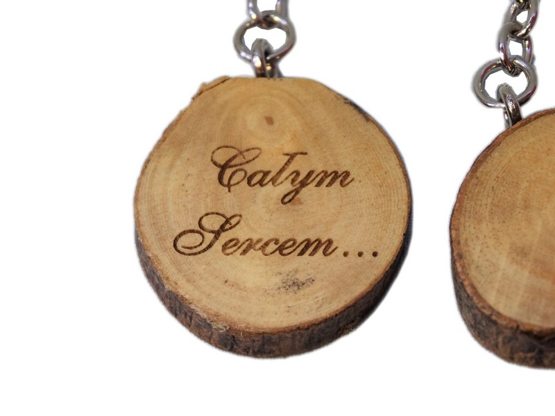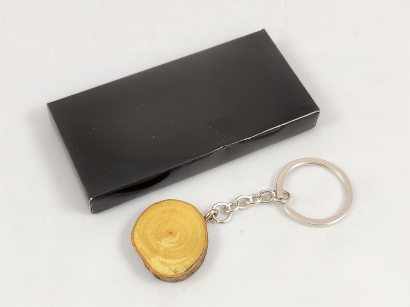 Z uwagi na naturalny materiał z jakiego wykonany jest brelok - kształt i wielkość drewnianego plastra jest zróżnicowana.