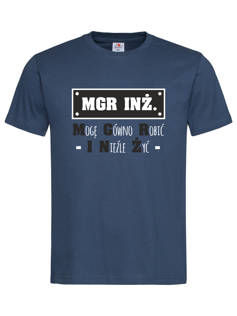 Na froncie koszulki znajduje się wykonany nadruk dedykacji dla Magistra Inżyniera.
