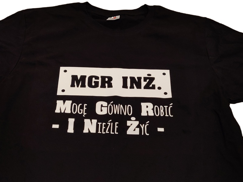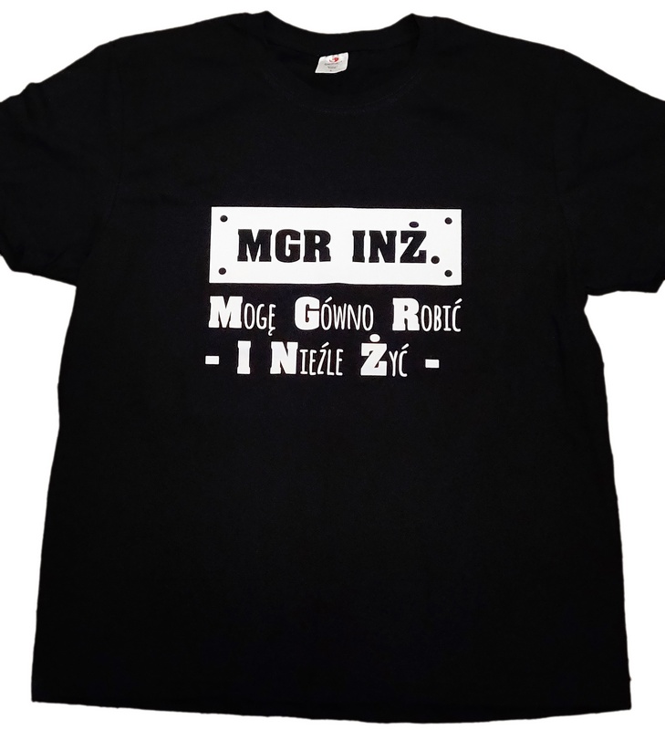 Koszulka w szczególności sprawdzi się jako praktyczny upominek z okazji zakończenia studiów i uzyskania tytułu Magistra Inżyniera.