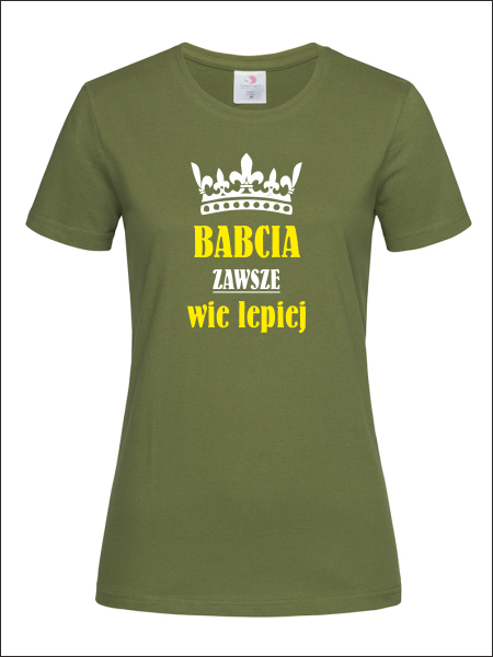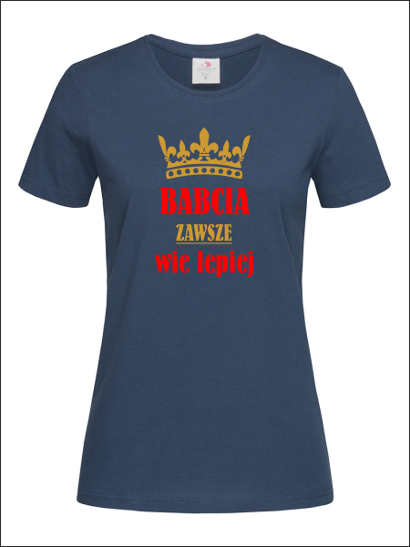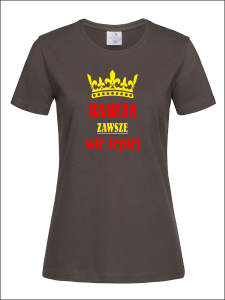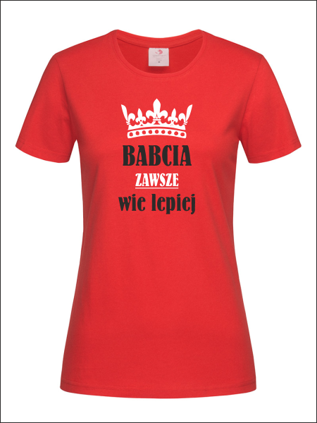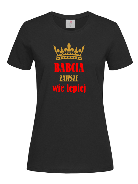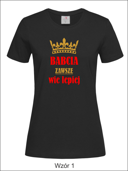 Na froncie koszulki znajduje się grafika korony oraz dedykacja dla Babci - "Babcia zawsze wie lepiej".